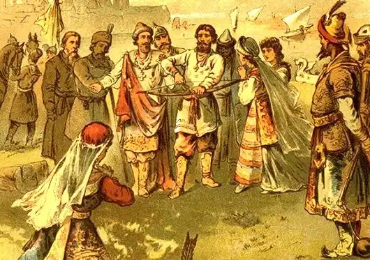 Характеристика персонажа: Хвастлив, неплохой гусляр, мастер игры в шахматы, торговец (получает разрешение беспошлинно торговать в Киеве).