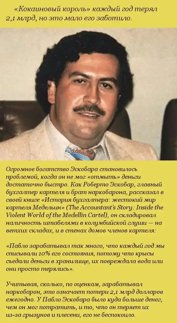 Далее вас ждут невероятные факты о богатстве колумбийского наркобарона и политического деятеля Пабло Эскобара, который смог заработать огромные деньги и неоднократно входил в список самых богатых людей мира по версии журнала Forbes.