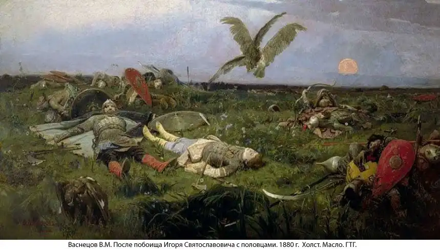 Эта, в общем-то, настоящая древнерусская песнь сказывает о неудачном походе князя Игоря Святославича на половцев. О мотивах Игоря говорится весьма красноречиво: князь идет в поход за славой, в том числе и за славой предков: «Прошлую славу себе похитим, а будущую сами поделим».
