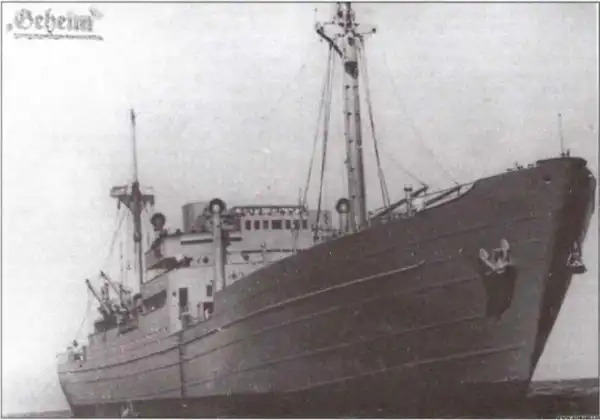 Судно было построено в 1936 году на верви Германиаверфт в Киле и получило название «Каир». Это был стандартный теплоход водоизмещением 11000 тонн, оснащенный одним семицилиндровым дизелем. До войны оно совершало обычные коммерческие грузовые рейсы в интересах компании «Дойче Левант Лайн» в качестве банановоза. После начала Второй мировой «Каир», как и многие другие суда гражданского назначения, был реквизирован для нужд кригсмарине.