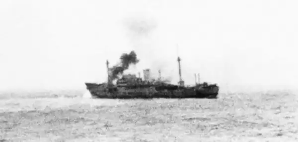 Немецкие 150-мм орудия вели сильный огонь, несмотря на то, что подъемники не работали, и снаряды приходилось доставать из трюма вручную. Американский сухогруз уже сильно горел и остановился. Метким попаданием немцы уничтожили его орудие.