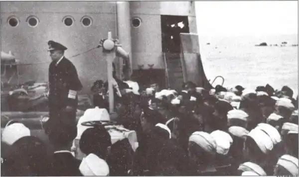 К слову говоря, расчет этого единственного, не прикрытого даже противоосколочным щитом, орудия был уничтожен вскоре после начала сражения. Номера расчета заняли моряки-добровольцы, которых также выкосило осколками. В последние минуты боя огонь по врагу вел в одиночку 18-летний кадет Эдвин ОʼХара, пока взрывом орудие не было уничтожено. Посмертно он был награжден Военно-морским крестом «За доблесть». Его именем назовут вступивший в строй в 1944 году эскортный миноносец D-354.