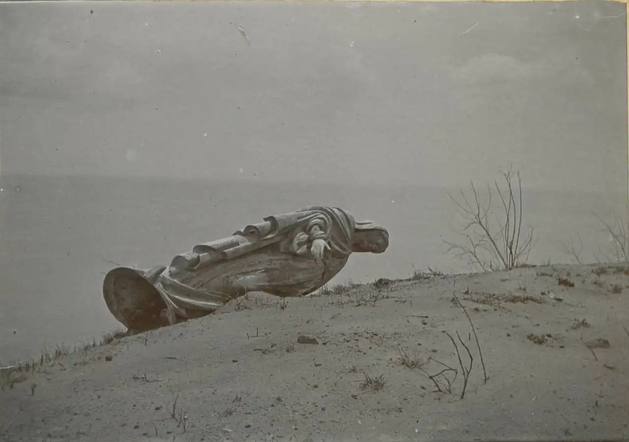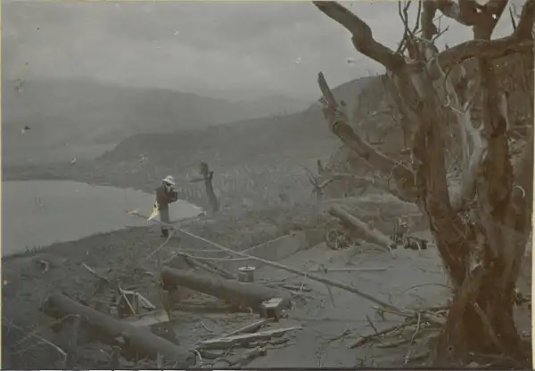 Но он был слишком неустойчивым, чтобы долго существовать. И к сентябрю 1903 года рухнул. К тому времени ученые с «Дикки» сфотографировали его, сохранив на века. А пока обелиск стоял, то казался ученому Анджело Хейлирину «природным памятником в честь 30000 погибших, которые остались лежать в безмолвном городе у его подножия » .