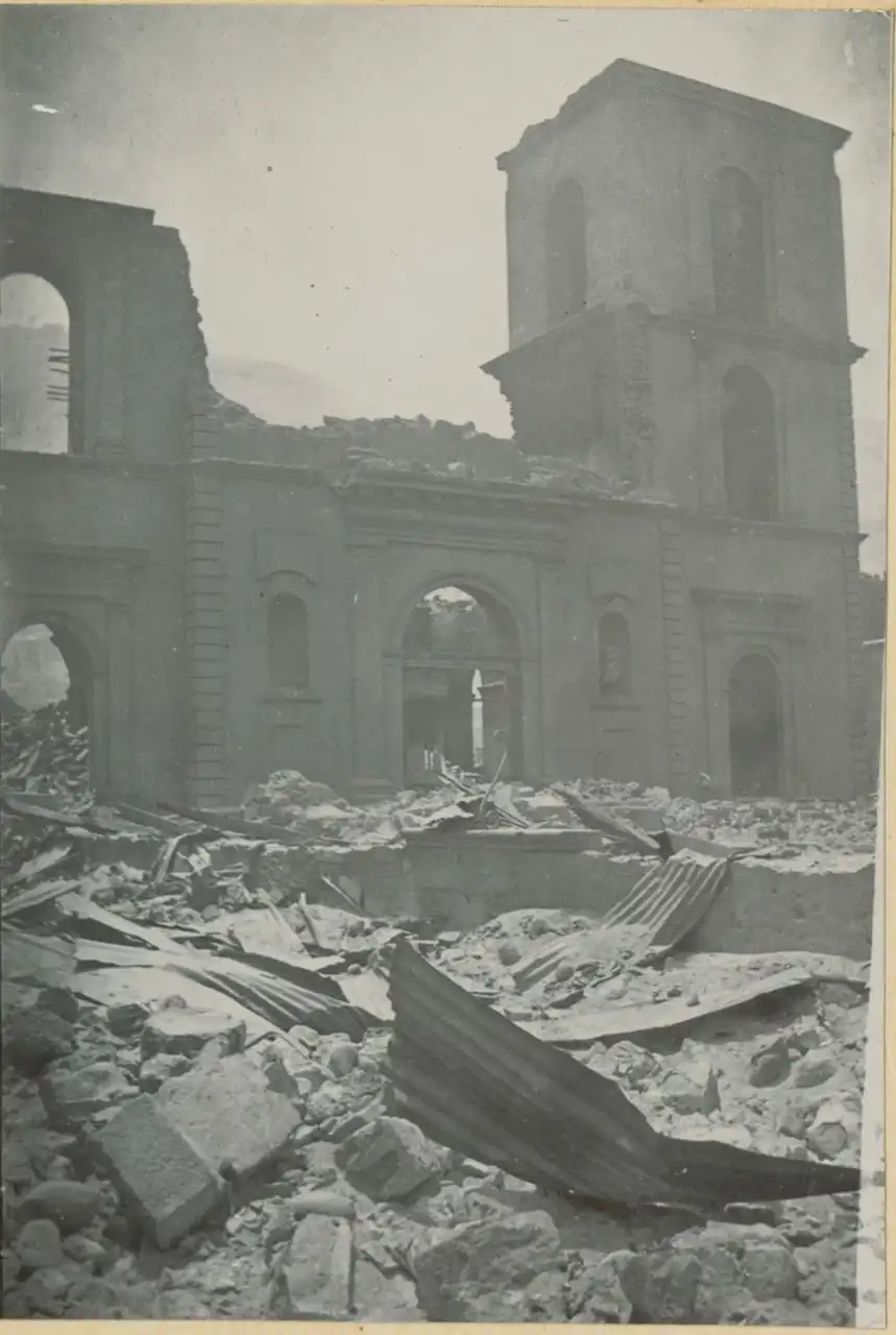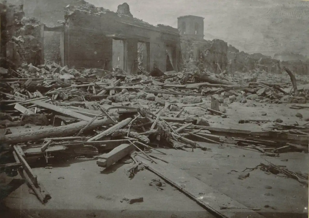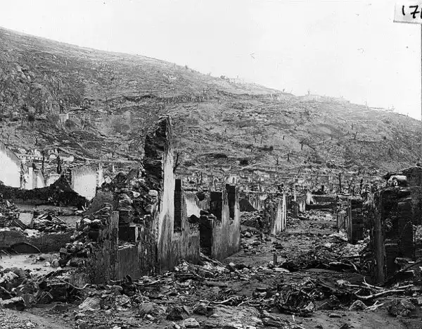 Вид Сен-Пьера после извержения вулкана