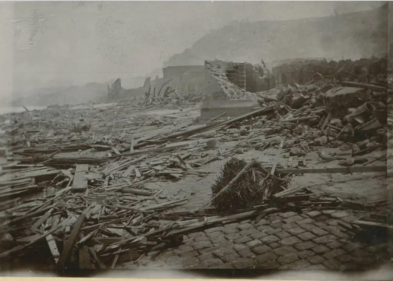 Для того, чтобы город ожил и в него могли войти спасатели, потребовалось 4 дня. В городе спасатели увидели невыносимые картины ужаснейших разрушений. На перегонном заводе выгорели резервуары, представлявшие собой массивные баки из 6-миллиметрового железа, спаянные вместе.