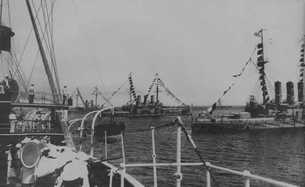 Николай II проводит смотр линейным кораблям-додредноутам Черноморского