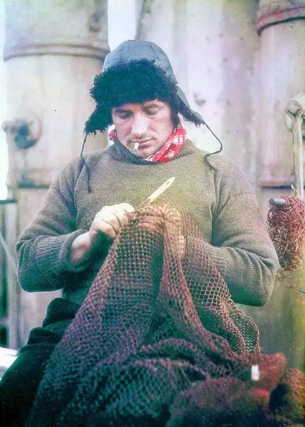 Боцман Джон Винсент чинит сеть на «Эндьюрансе».