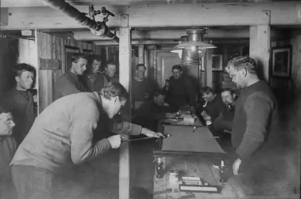 Фрэнк Херли, фотограф экспедиции, развлекал себя прогулками вокруг корабля, снимая драматические композиции из заблокированного судна и ледовых образований. В темной комнате, рядом с двигателем судна, он мастерски обрабатывал свои стеклянные негативы в почти замерзших химреактивах, отчего неимоверно страдала кожа его кончиков пальцев.