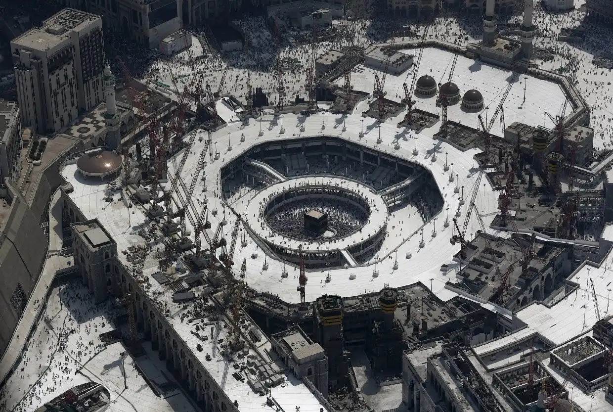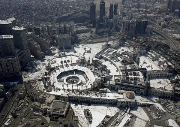 2. Вид на мечеть Аль-Харам в Мекке — главную и крупнейшую в мире мечеть, во внутреннем дворе которой находится главная святыня ислама − Кааба. Это здесь упал кран 11 сентября 2015. (Фото Ahmad Masood | Reuters):