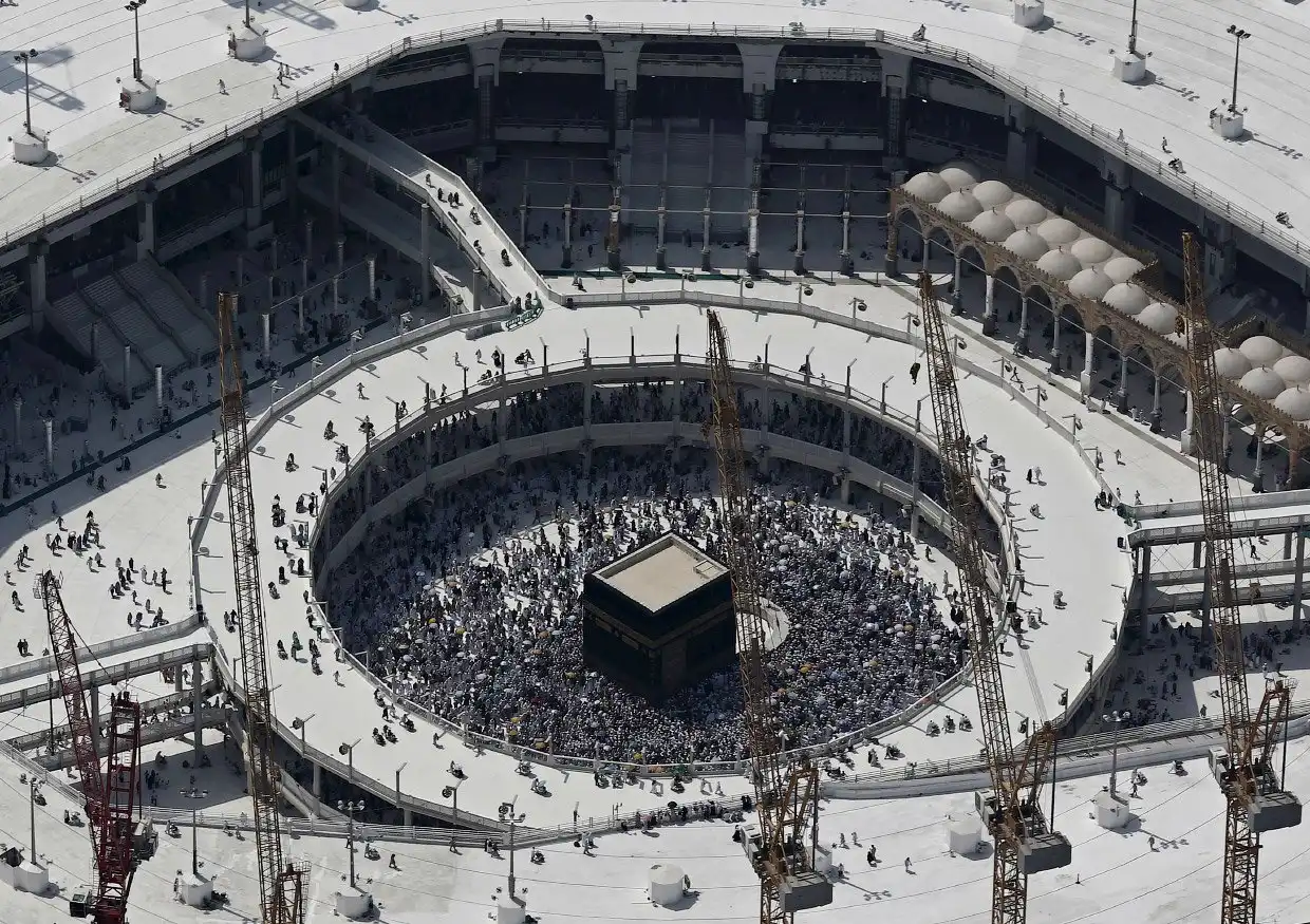 Куб в центре — это Кааба — мусульманская святыня в виде кубической постройки во внутреннем дворе мечети Масджид аль-Харам (Заповедная Мечеть) в Мекке. Это одно из основных мест, собирающее, согласно кораническим предписаниям, паломников во время хаджа. Кааба носит символическое имя «аль-Бэйт аль-Харам», что означает в переводе с арабского «священный дом». (Фото Ahmad Masood | Reuters):