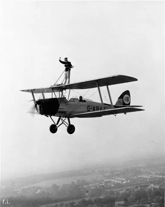 Первым известным случаем ходьбы по крыльям аэроплана во время полета была практическая демонстрация поперечной устойчивости конкретной модели. Пилоту армии США Ормера Локлир во время службы нравилось ходить по крыльям самолета для его настройки и корректировки.