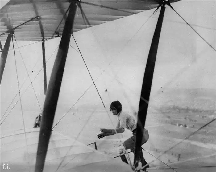 1927 год. Ричард Шиндлер показывает трюк на самолете, пилотируемом Ричардом Перлиа.