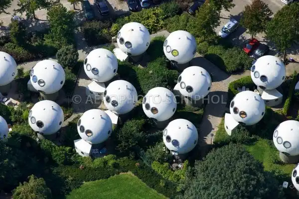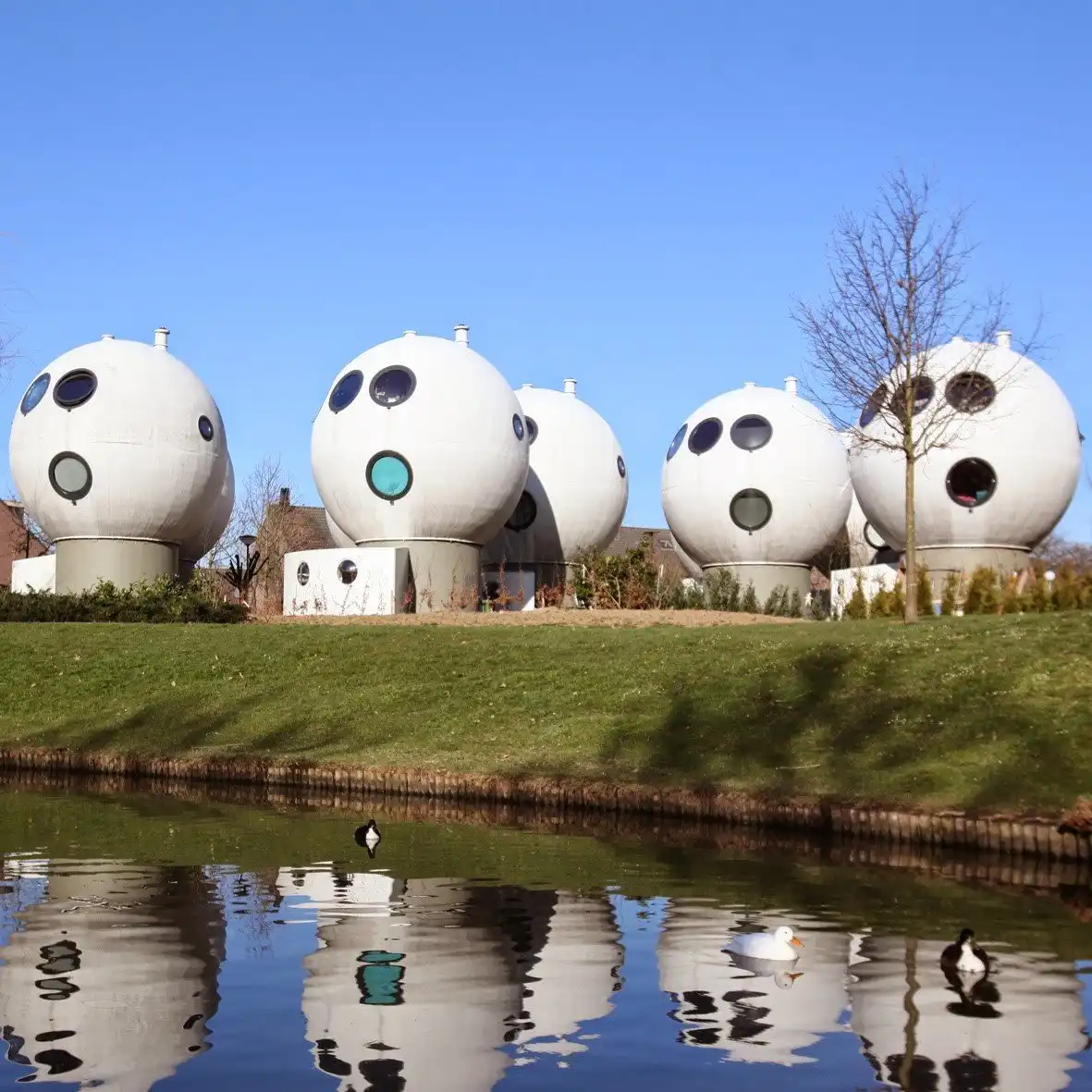Каждый из пятидесяти домов-шаров (а название Bolwoningen произошло от слияния двух слов: bol – «шар» и woningen – «дом») имеет спальню, гостиную, кухню и туалет и рассчитан максимум на двух человек.