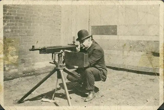 Первый реально действующий пулемет, использующий для перезарядки энергию предыдущего выстрела, появился в США лишь в 1895 году, трудами легендарного оружейника Джона Браунинга (John Moses Browning). Браунинг начал экспериментировать с оружием, использующим для перезарядки энергию пороховых газов, еще в 1891 году. Первая опытная модель, созданная им под патрон .45-70 с дымным порохом, была продемонстрирована им фирме Кольт, и бизнесмены из Хартфорда согласились финансировать дальнейшие работы в этом направлении. В 1896 году ВМФ США принял на вооружение пулемет Colt M1895, разработанный Браунингом, в варианте под патрон 6мм Ли, состоявший в то время навооружении флота. В этот же период Армия США закупила небольшое количество пулеметов М1895 (прозванных в войсках «картофелекопалками» за характерный качающийся под стволом рычаг) в варианте под армейский патрон .30-40 Krag. Пулеметы М1895 получили боевое крещение (бок о бок с картечницами Гатлинга с ручным приводом) в конфликте США с Испанией, имевшем место на Кубе в 1898 году. Интересно, что в дальнейшем одним из самых массовых пользователей пулеметов Браунинга М1895 стала Россия, закупавшая их в значительных количествах (под русский патрон калибра 7.62мм) после начала Первой Мировой войны.