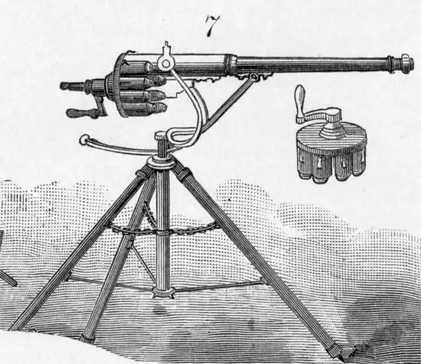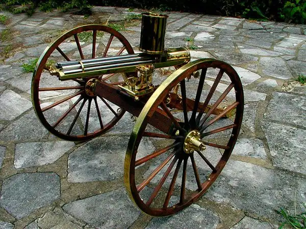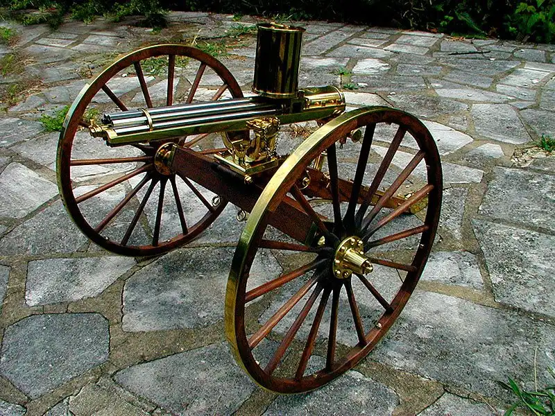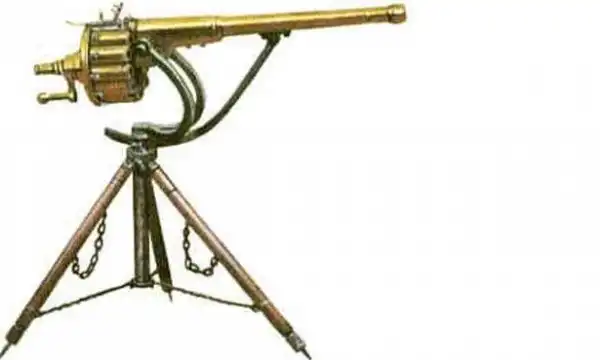 Запатентована доктором Ричардом Джорданом Гатлингом в 1862 году под названием Revolving Battery Gun. Предшественницей орудия Гатлинга является митральеза.