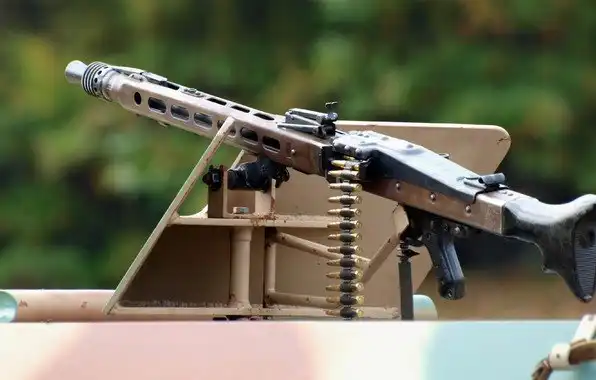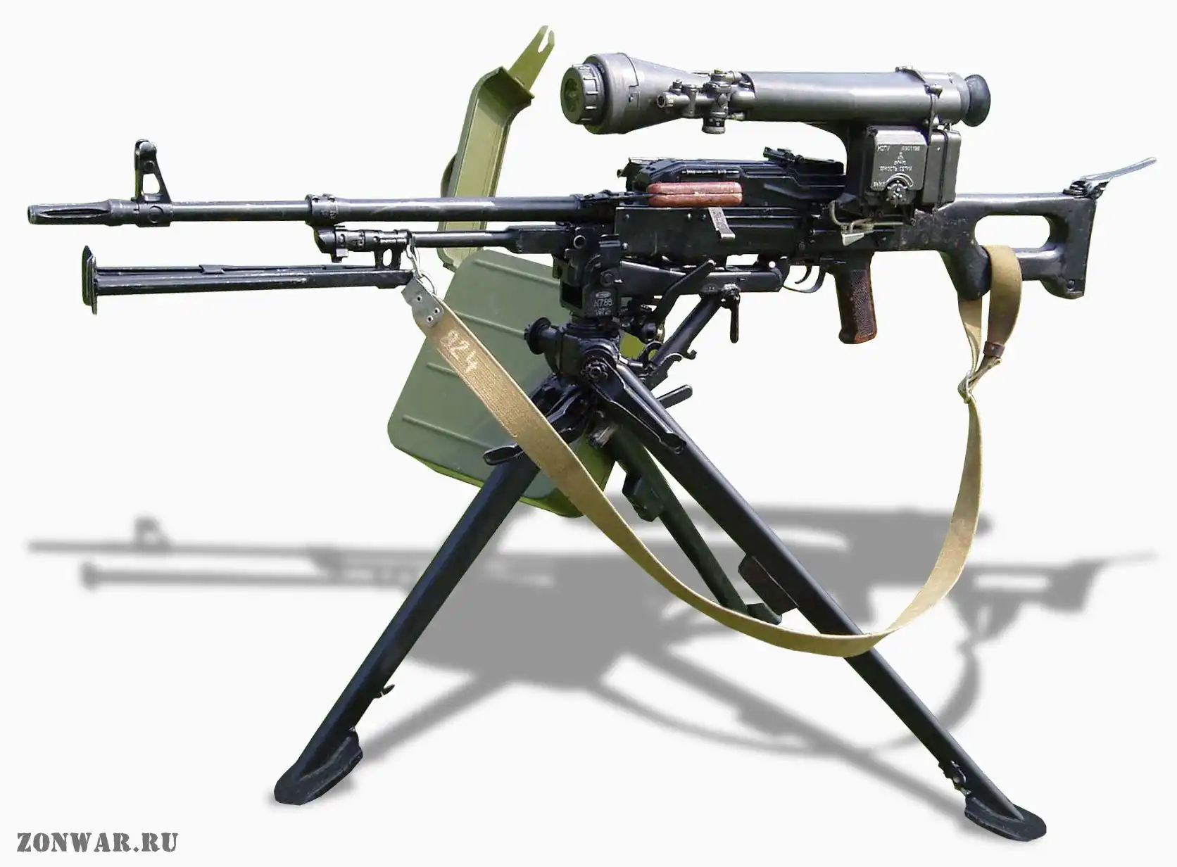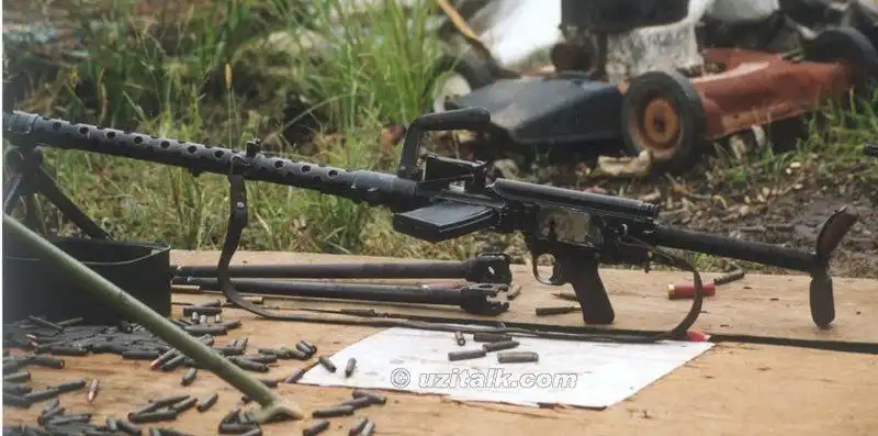 Ствол пулемета сравнительно короткий, как правило, оснащен длинным конусным плямягасителем, уменьшающим ослепление стрелка дульной вспышкой при стрельбе в сумерках.
