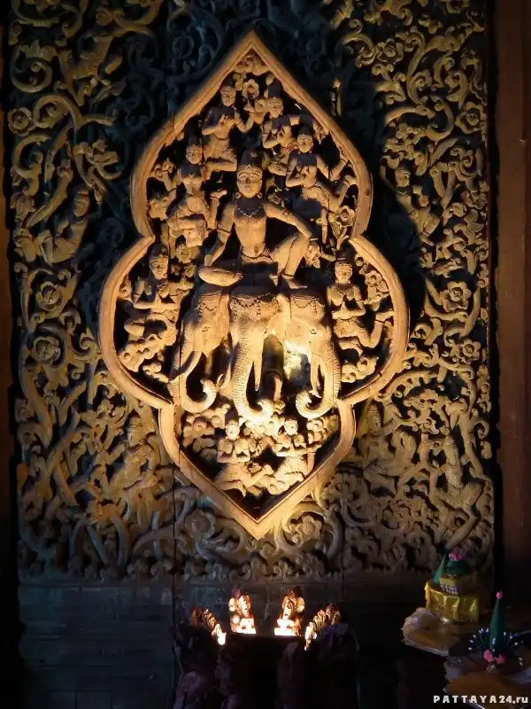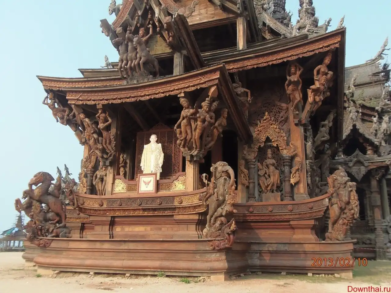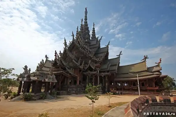 Это уникальное в своем роде творение расположено на севере Паттаи, на уединенном полуострове. Храм совершенно не похож на традиционные буддистские постройки, и выполнен целиком из ценных пород дерева - тик, красное дерево, золотой тик. Строится Храм без единого гвоздя, в его создании задействована эклектика архитектурных стилей - тайского, кхмерского, индийского и камбоджийского. Стены украшены потрясающей ручной резьбой, сюжеты который взяты из тайского и индийского мифологического эпоса. Храм признан самым высоким деревянным сооружением в мире, его высота со шпилем - 105 метров. Строительство началось в 1981 году и ведется до сих пор. Информации о Храме крайне мало, она часто противоречива и иногда даже фантастична. К примеру, ходит легенда о том, что при начале строительства асторологи предсказали - основатель проекта должен умереть сразу как только строительство будет закончено, и именно поэтому работы по отделке храма намеренно не завершают, но никакого официального подтверждения эта версия, конечно же, не имеет.