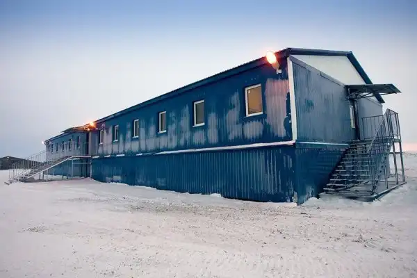 Солдаты смогут переходить из одного здания комплекса в другое, не выходя на улицу, где зимой температура воздуха может опускаться до -47 градусов. Топливо может закачиваться на склады из танкеров.