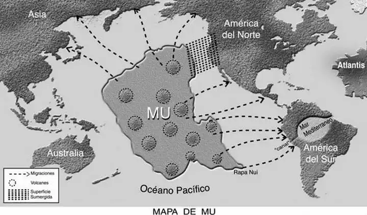 Му – континент, который якобы затонул в Тихом океане. Истоки представлений о нем – это мифы о некоей стране посреди океана. Легенды острова Пасхи рассказывают об огромном размере тогдашнего острова, который постепенно все глубже и глубже уходил под воду. Однако современная наука отметает эту версию, так как береговая линия знаменитого острова оставалась одной и той же на протяжений тысячелетий. Тур Хейердал заметил, что полинезийцы в своих преданиях часто затрагивают тему пришедших с Востока предков. Если выстраивать гипотезу на основе этого мифа, то необходимо предположить наличие какой-то земли, лежащей посреди Тихого океана. Возможно, что небольшие вулканические острова, образующие Тихоокеанское огненное кольцо – остатки былого материка. Впрочем, никакие исследования не подтвердили эту точку зрения. Огюст Лё-Плонжон утверждал, что при изучении развалин майя в Юкатане он нашел тексты, доказывающие, что этот народ обладает более древней чем Египет историей, а изначальной его землей был таинственный континент под названием «Му». Согласно Плонжону, королева Му основала Египет, а другие ее подданные, бежавшие с тонущего материка, стали зачинателями майянской цивилизации.
