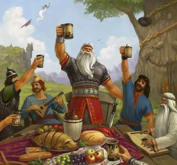 Обеды длились 6-8 часов подряд и включали почти десяток перемен, каждая из которых в свою очередь состоит из двух десятков одноименных блюд: десяток сортов жареной дичи, соленой рыбы, десяток сортов блинов и пирогов. Блюда готовились из целого животного или растения, всякого рода измельчения, перемалывания и дробления пищи использовались только в начинках для пирогов. Да и то очень умеренно.