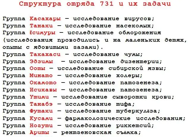 У истоков «Маньчжурского отряда 731» стоял Сиро Исии, член созданного в 1933 г. «отряда Камо». Он же являлся идейным вдохновителем отряда и его руководителем с 1936 г.