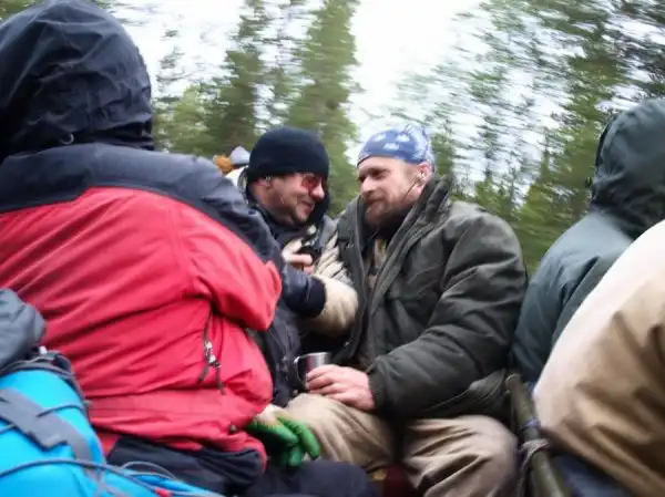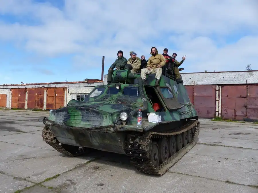 И наш замечательный водитель Андрей. Во второй день дороги пошел проливной дождь, так что почти все попрятались в кузове МТЛБ. И как-то незаметно, без накладок прошли болота. А ведь сколько страданий они принесли нам в прошлые года!