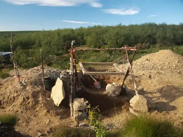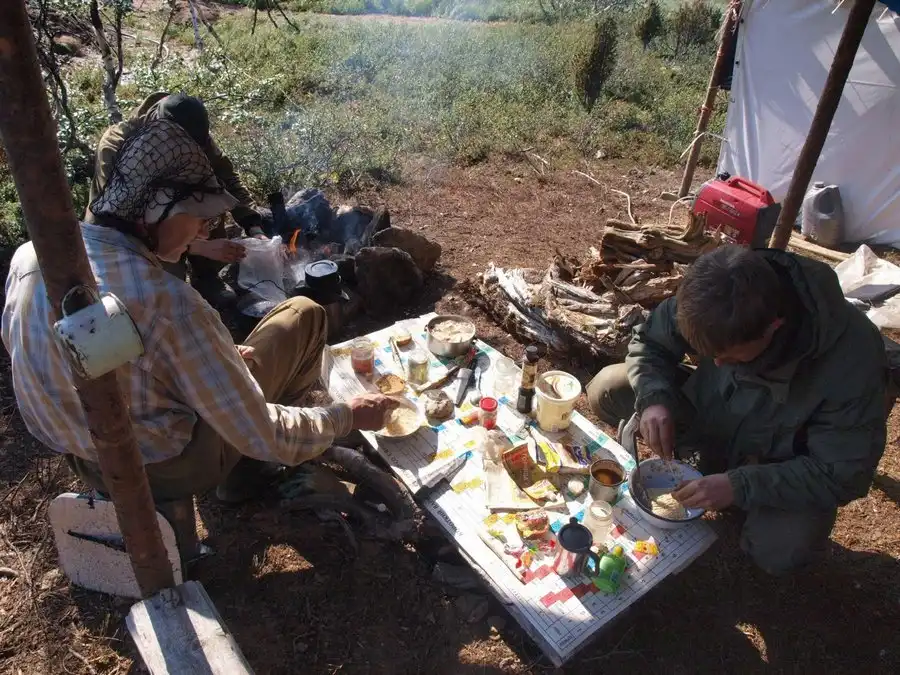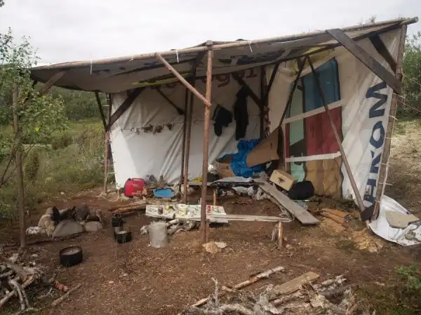 Соорудили надежное укрытие от дождя и ветра, ведь за день погода может изменяться несколько раз, а изба далеко.