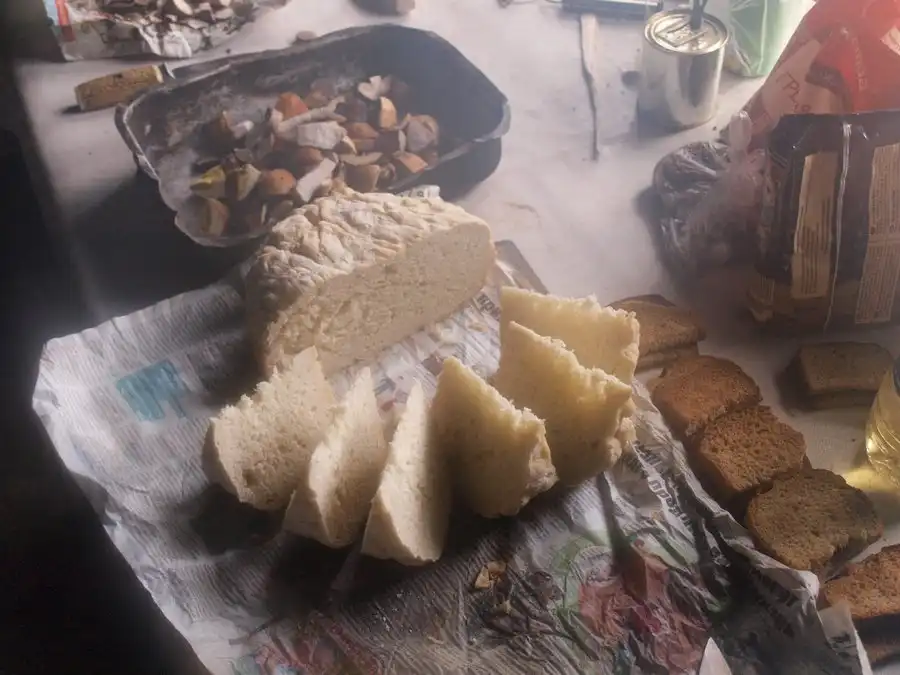 Хлеб из наших запасов закончился на третьей неделе, а впереди еще столько же. Потому я решил попробовать испечь свежего хлеба, благо все для этого есть. И все же за многолетнюю практику длительных поездок хлеб почти не пекли - в основном пироги, а это все-таки не каждый день себе можно позволить, процесс долгий. Испечь хлеб оказалось не так уж сложно, потихоньку я освоился и выпекал такой каравай раз в два дня.