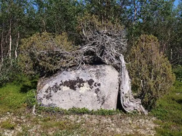Прелестны и бесконечно разнообразны переплетения форм и пластики можжевелового куста за полярным кругом! Кто знает, сколько лет этому кусту? Лето короткое, месяца полтора, растет здесь все очень медленно. И мысль о времени сразу посещает тебя при взгляде на это дерево, на его его фактуру. Можжевельник здесь явил собой застывшее в графике представление времени.