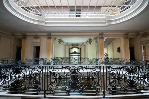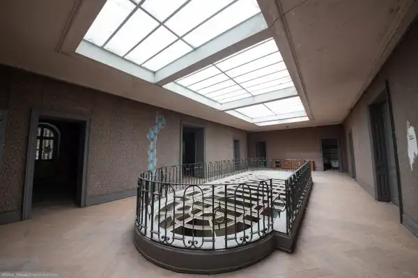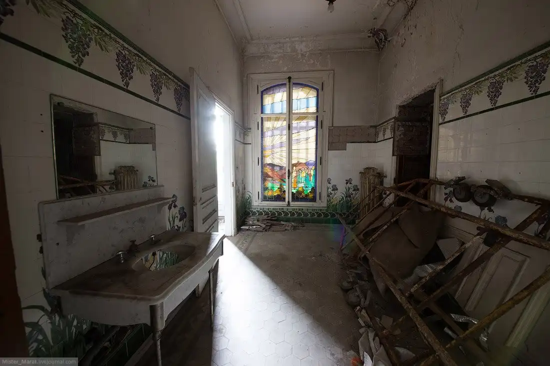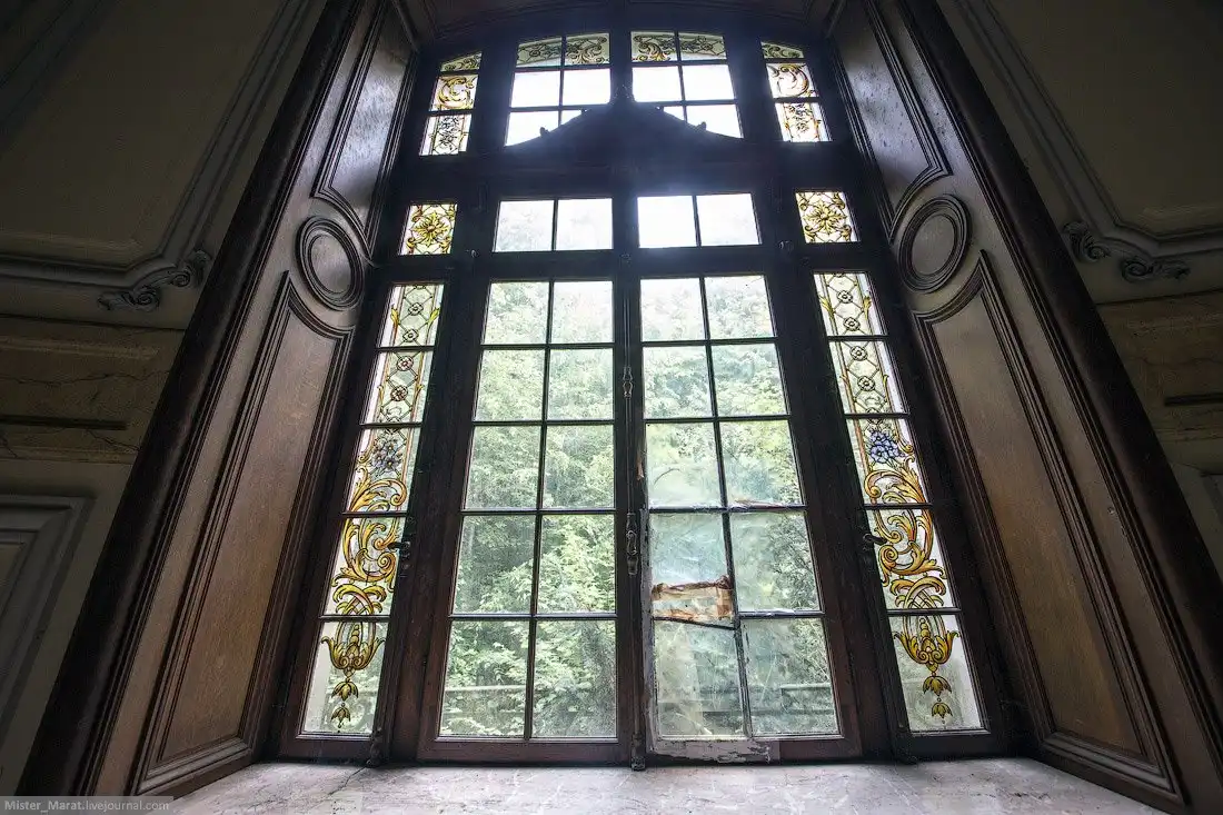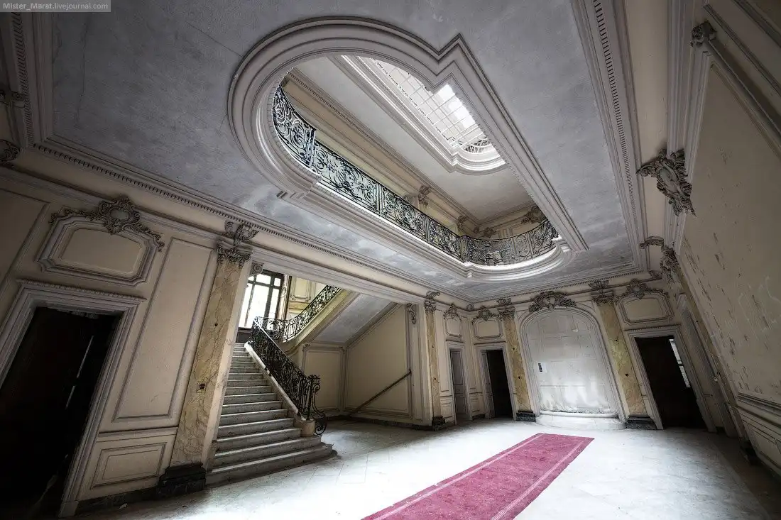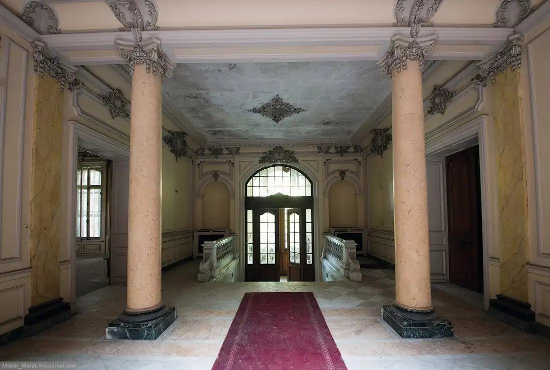 Главный вход обставлен очень изящно и утонченно, видна рука профессиональных архитекторов. Если раньше сюда посторонние могли попасть с очень большим трудом, то сейчас все, что нужно-это просто знать координаты и словить момент — «срок годности» многих заброшек ограничен по многим причинам: 1) здание могут снести, 2)здание могут начать реставрировать, 3)здание могут начать охранять и т.д.