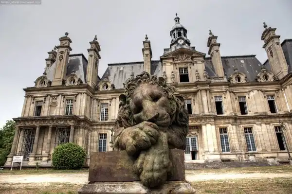 Следующий замок, Щато дю Карнель, находился на территории пансионата для престарелых. Замок активно реставрируется, и возможно, что уже сейчас начал функционировать. При подходе к замку меня встретили лишь грустные его стражи — скульптуры львов. Один из них мне особенно запал в душу. Именно он отлично символизирует красивое слово decay — упадок, опустошение, запустение. Но этому льву повезло — он пережил период забвения, и уже совсем скоро увидит в своём замке признаки жизни. В самом же замке внутри пусто и очень темно-все окна заколочены.