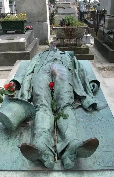 Среди самых знаменитых людей, похороненных на Пер-Лашез, выделяется могила Виктора Нуаре. Этот мужчина работал журналистом. Его друг и коллега был очень оскорблен письмом принца Бонапарта, которое опубликовало конкурирующее издание. Мужчина очень просил Виктора инициировать дуэль, но вот что происходило дальше неизвестно. История же закончилась тем, что Виктор влепил принцу пощечину, после чего тот застрелил наглеца. Причем смерть настигла журналиста незадолго до свадьбы.