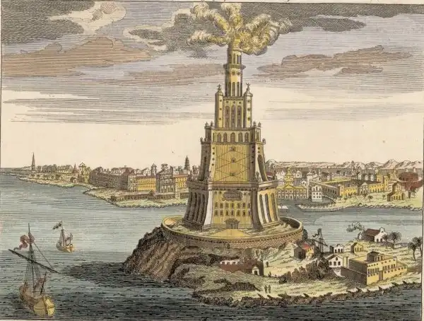 Согласно существующей легенды, Юлий Цезарь, вынужденный сражаться на улицах Александрии против значительно превосходящих сил противника, чтобы придать стойкость своим войскам, приказал сжечь римский флот, на который уже грузились, готовые к эвакуации в Рим, ценности и рукописи Александрийской библиотеки.