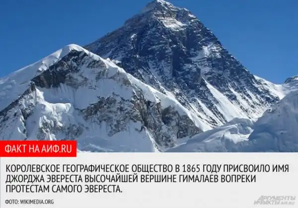 Однако, как ни крути, для большинства людей, не вникающих глубоко в подобные споры, Эверест остаётся Эверестом. Уж больно подходящей для высочайшей вершины планеты оказалась фамилия сэра-геодезиста.