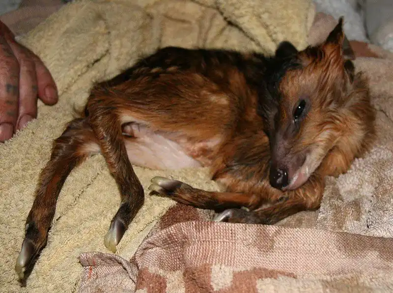 При более внимательном осмотре оказалось, что это самка оленя и она на последней стадии беременности. Более того, олененок в утробе матери был еще жив! По счастью, в машине находились хирургические инструменты, а сам волонтер был обучен азам ветеринарии. Он извлек крохотного олененка и как можно быстрее отвез его в Hillside Animal Sanctuary.