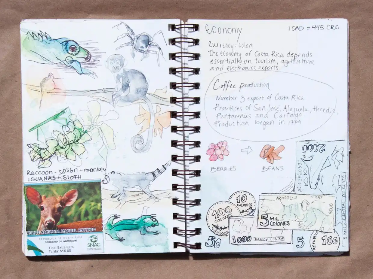 В мае 2015 года Вероник Амель (Veronique Hamel) отправилась в путешествие в Никарагуа и Коста-Рику, Думаете, что мы покажем вам типичные фотографии достопримечательностей? Не угадали! Девушка не брала фотоаппарат в поездку, а заменила его на краски и альбом.