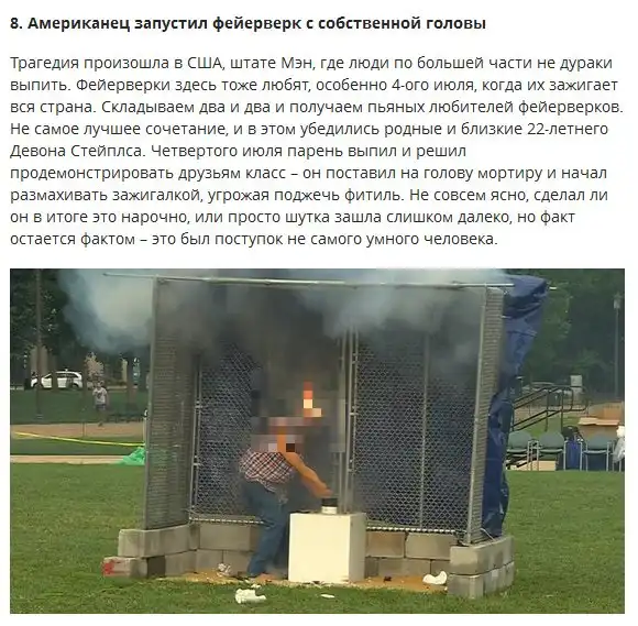 Далее предлагаемся познакомиться с самыми нелепыми смертями, произошедшими в этом году. Этих людей можно назвать главными номинантами на Премию Дарвина.