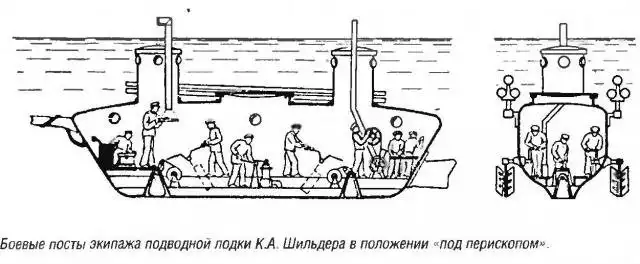 Вот что объясняет сам Шильдер: "Занимаясь с 1832 года изысканием средств... воспламенения пороха гальванизмом, я открыл преимущественную возможность употребления сего способа в воде, в коей для произведения желаемого действия достаточно опустить мины в тех местах, где обороняющийся намерен поразить противника. Но чтобы сделать сей способ грозным орудием для неприятельского флота, необходимо было найти верное средство к подводу мин под неприятельские корабли, стоящие на якоре, или к уловлению их на ходу; казалось, что устроение подводной лодки и усовершенствование плавания с оною может решить сию задачу - и я немедленно занялся способами к достижению сей цели".