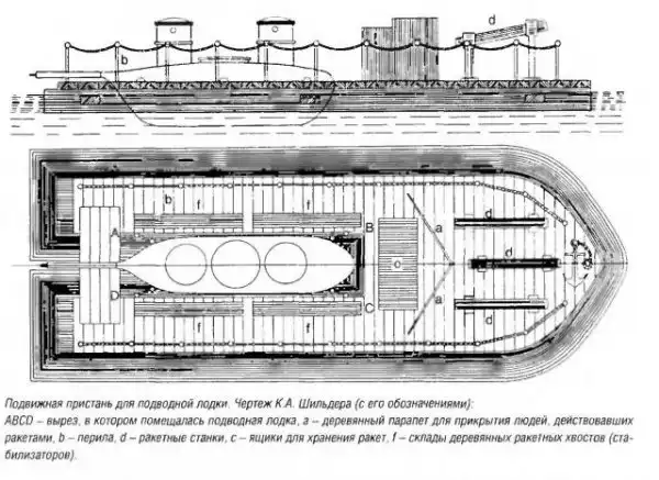 Шильдер предложил для доставки подводной лодки к месту боевых действий использовать подвижную пристань, также вооружив ее ракетами. Другим вариантом доставки подводных лодок предлагались два парохода, строительство первого из них не было доведено до конца, а второй ("Отважность") не оправдал себя при испытаниях. Шильдером было предложено еще два проекта подводных лодок, которые не были воплощены в жизнь.
