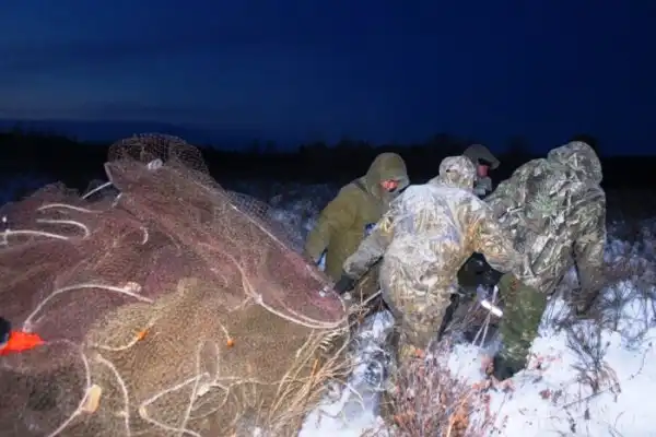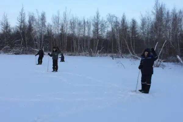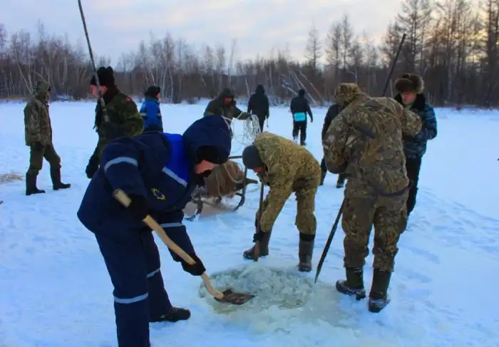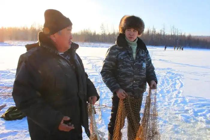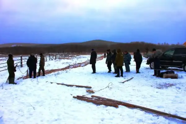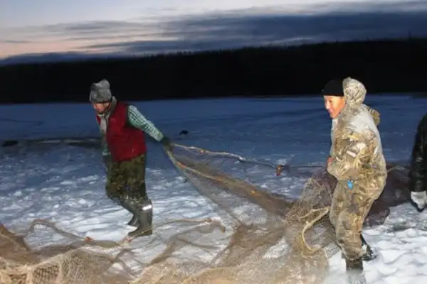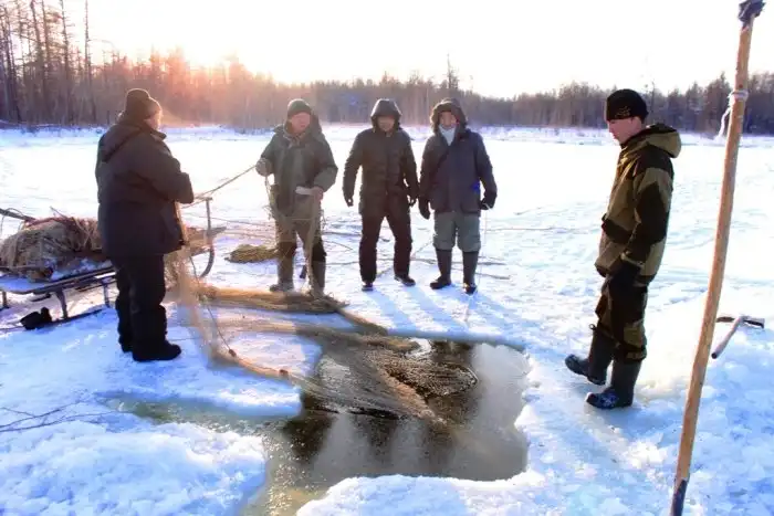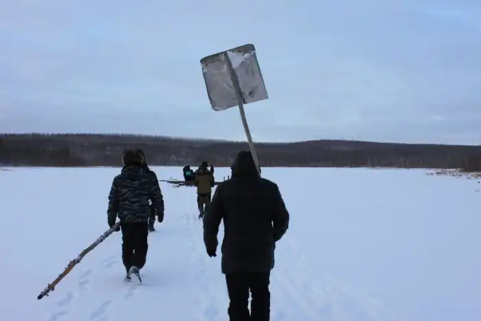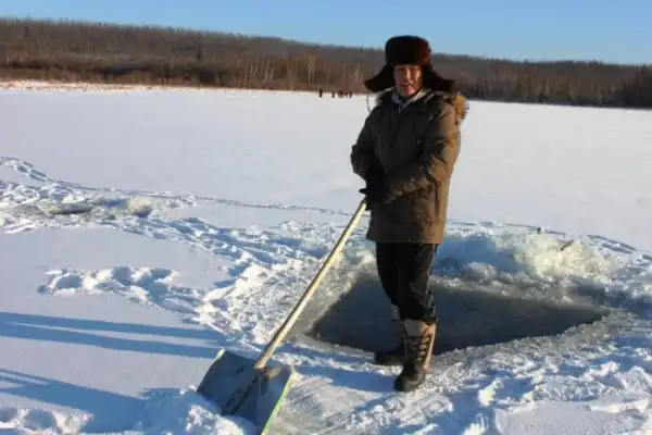 Прорубаем большую прорубь (чардаат, ойбон), откуда протянем сеть подо льдом