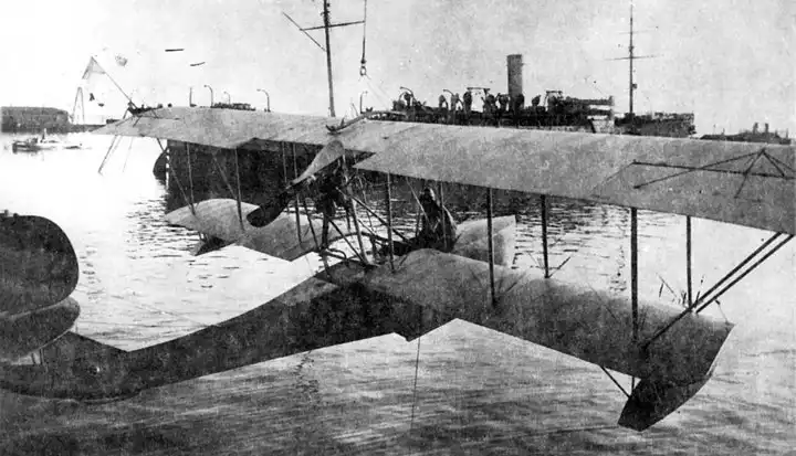 Появление в России гидросамолетов довольно быстро привело многих флотских специалистов к идеям их боевого применения на море, в том числе и непосредственно с кораблей. Задача судового базирования не представляла особых сложностей – на борту требовалось лишь обеспечить хранение и эксплуатацию аэропланов, а для их спуска на воду и подъема было достаточно обычных корабельных механизмов. Первые опыты русские авиаторы начали проводить на Черном море уже в 1912 году. Их результатом стало указание морского министра адмирала И.К. Григоровича оснастить разборными ангарами легкий крейсер «Алмаз» и транспорт «Днестр», а крейсер «Кагул» – переоборудовать «для возможности штатного вооружения аэропланом».