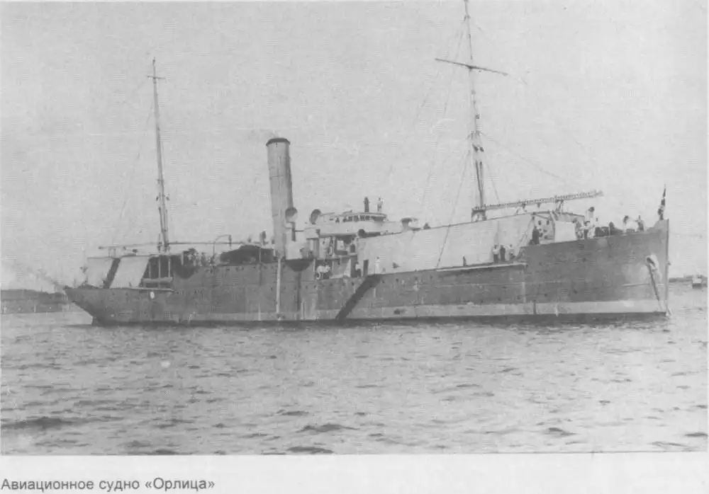 15 января 1915 года морской министр И.К. Григорович подписал соответствующий приказ, распределив работы Адмиралтейскому, Путиловскому и Невскому заводам, а также Петроградскому порту. 20 апреля «Орлица» была официально зачислена в состав Балтийского флота, а уже 15 мая началась ее служба (хотя мелкие строительные работы продолжались до ноября, даже в период участия корабля в боях). Для маскировки истинного назначения «Орлица» числилась учебным судном, а в документах ее называли «авиационным судном», «авиаматкой», «авиатранспортом» и даже… «авиационной баржей»!