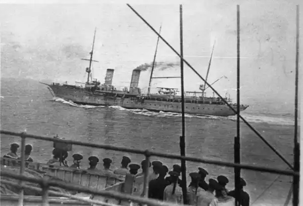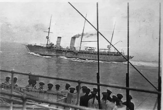 Крейсер второго ранга «Алмаз» с гидросамолетом на палубе