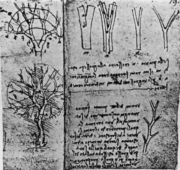 «Правило Леонардо» справедливо практически для всех известных видов деревьев. О нем осведомлены и создатели компьютерных игр, создающие реалистичные трехмерные модели деревьев. Более точно, правило это устанавливает, что в месте, где ствол или ветвь раздваивается, сумма сечений раздвоенных веток будет равна сечению исходной ветви. Когда затем и эта ветка раздвоится, сумма сечений уже четырех ее ответвлений будет по-прежнему равна сечению исходного ствола. И так далее.