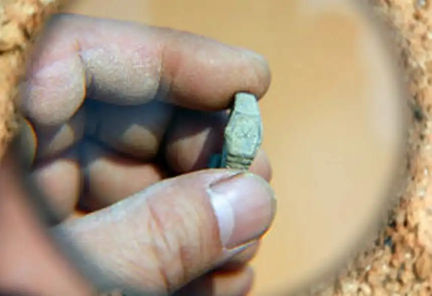До находки удивительного артефакта археологи добирались с трудом. Снимая слои окаменелого грунта, ученые подобрались до надгробия. Как вдруг, в руки специалистов попадает улепленный грунтом артефакт, внешне похожий на крупный перстень.