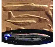 Что вы тут видите? Многие уверяют, что это картина атакующего вертолета и того, что напоминает расположенные внизу друг под другом емкости с горючим-полусфера и на ней стоит орел, смотрящий на бронетанк. Здесь оказались и два других типа летательных аппаратов, направленных в ту же сторону. «Врагом» является бронетанк. Отставной офицер, опознал в вертолете специальный военный вертолет США и сказал, что весь набор иероглифов сходится с картиной военной операции «Буря в Пустыне». Это была единственная война, в которой такой вертолет и танки участвовали одновременно.