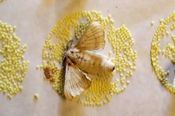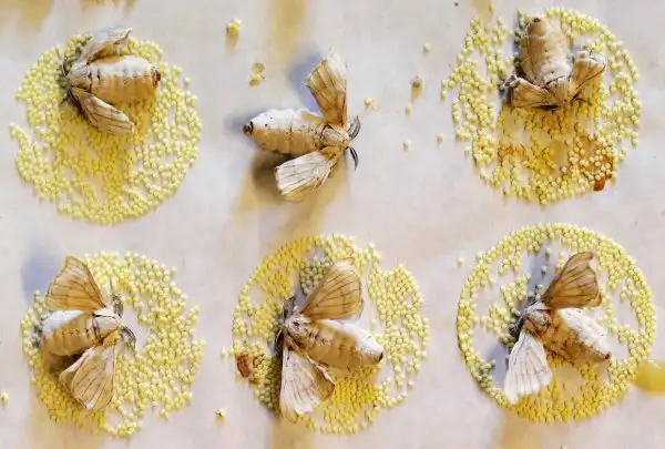 8. Тутовый шелкопряд и яйца, отложенные бабочкой. (Фото Alessandro Bianchi | Reuters):