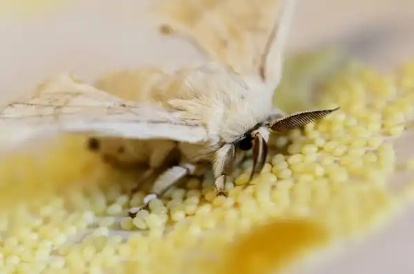 Коконы нужно успеть собрать до того, как появятся бабочки. Если их передержать, то бабочка прогрызет кокон и повредит шелк. Коконы погружают в кипящую воду, чтобы убить гусениц и растворить защитный слой.