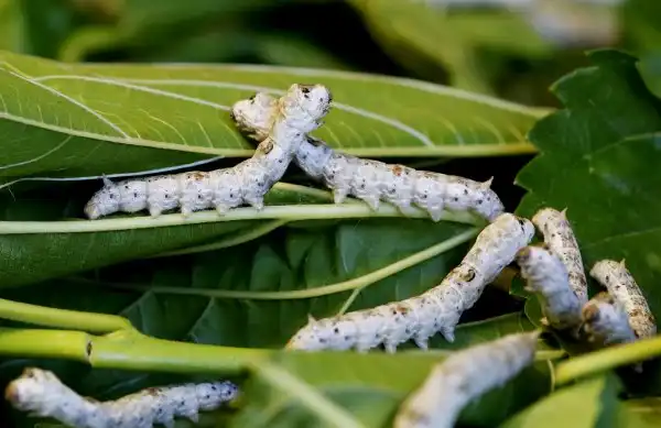 9. Все начинается с крошечных яиц, настолько маленьких, что даже масса 2 000 штук не превышает 1-го грамма. Их них вылупляются гусеницы размером не больше булавочной головки. За следующие 3 дня они увеличат свой вес в 10 000 раз. И питаются они листьями белой щелковицы. (Фото Alessandro Bianchi | Reuters):