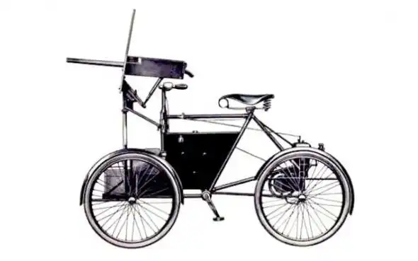 Первое боевое средство передвижения — четырехколесный велосипед с двумя пулеметами "Максим" и щитом — было создано в 1899 году Ф. Р. Симсом (F. R. Simms)